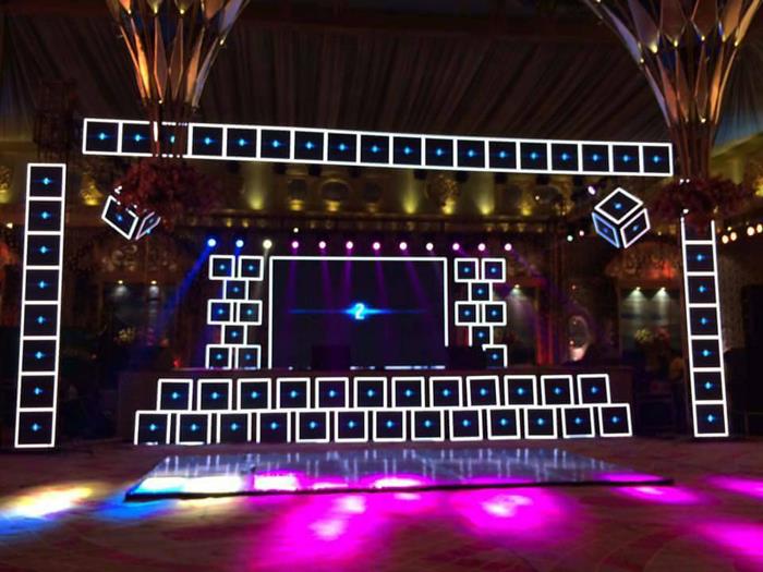 500x500mm 알루미늄 다이캐스팅 LED 패널이 있는 실내 p3.91mm 렌탈 LED 디스플레이는 인도의 콘서트 및 결혼식 행사에 막 사용되었습니다. LED 디스플레이의 총 크기는 150개 패널(37.5sqm)입니다.