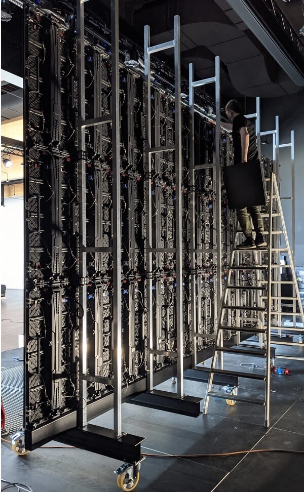 원래 고객은 무대의 트러스에 걸 수 있는 스크린을 원했지만, 다시 생각한 후에 실제로 무대 바닥에 쌓을 수 있는 벽을 만들 가능성이 더 큽니다. 우리는 바퀴가 있는 이동식 브래킷을 만들 것을 권장했습니다. 바닥에 직접 세우지 않고 브라켓 구조에 스크린을 쌓는다. 이 솔루션의 장점은 LED 벽을 분해하지 않고 스테이지의 모든 위치로 자유롭게 이동할 수 있다는 것입니다.